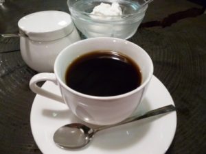 珈琲貿易さんのブレンドコーヒーです。なんと、ホイップクリーム付きです。ミルクでもフレッシュでもない、この贅沢さ!